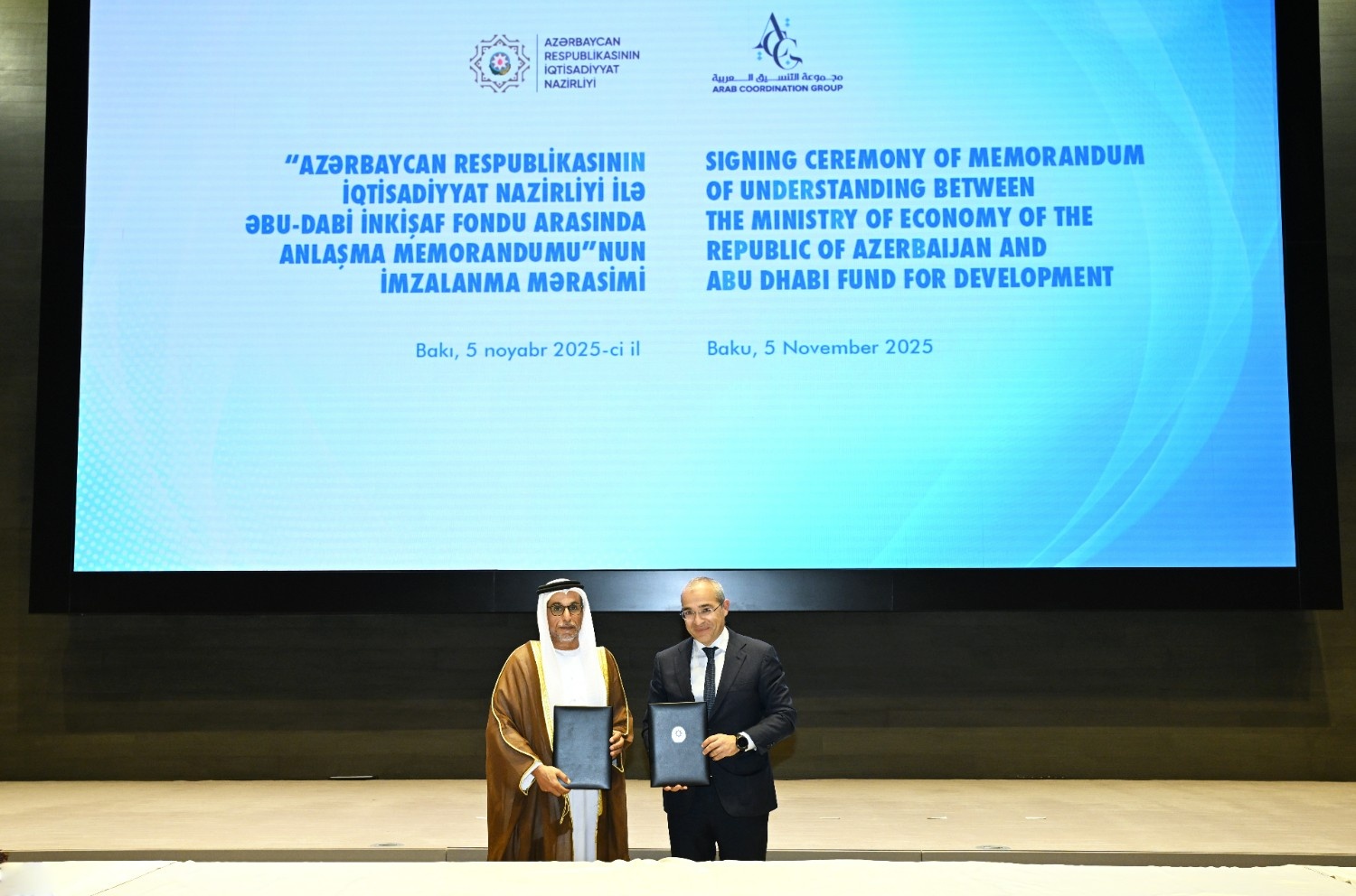 Daha sonra “Azərbaycan Respublikasının İqtisadiyyat Nazirliyi ilə Əbu-Dabi İnkişaf Fondu arasında Anlaşma Memorandumu” imzalanıb. Sənədi Azərbaycan Respublikasının iqtisadiyyat naziri Mikayıl Cabbarov və Əbu-Dabi İnkişaf Fondunun baş direktoru Məhəmməd Saif Əl-Suveydi imzalayıblar.