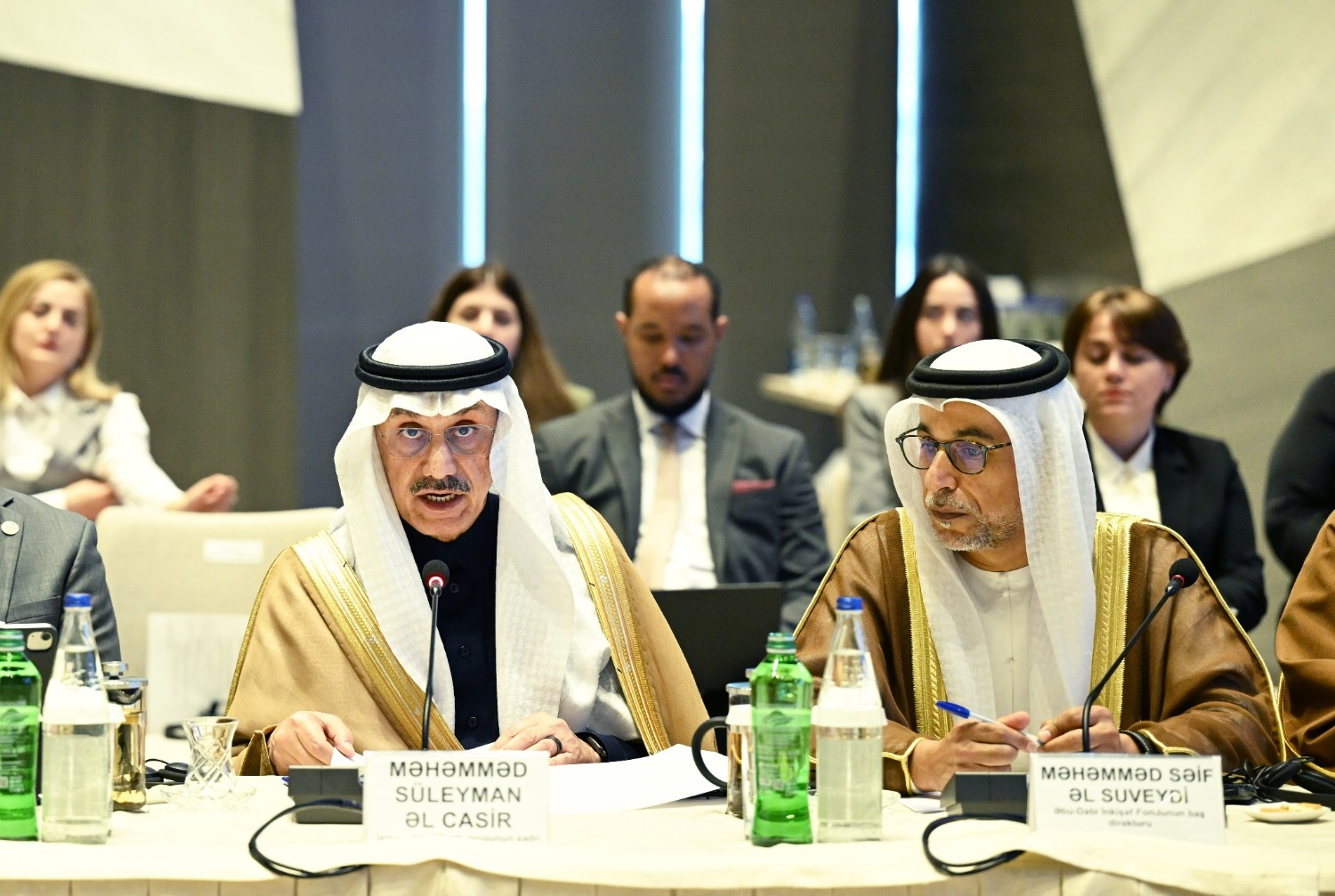 İslam İnkişaf Bankı Qrupunun prezidenti Məhəmməd Süleyman Əl-Casir Azərbaycan və ƏKQ arasında möhkəm tərəfdaşlığı qeyd edib. Əməkdaşlığın genişləndirilməsi üçün böyük potensialın olduğunu diqqətə çatdırıb. Dəyirmi masanın qarşılıqlı fəaliyyətin genişlənməsinə töhfə verəcəyinə əminliyini ifadə edib. Bankın Azərbaycanla güclü infrastrukturun qurulması, istehsal potensialının reallaşdırılması, rəqəmsal transformasiya və digər istiqamətlərdə tərəfdaşlığın genişləndirilməsi, xüsusilə işğaldan azad edilmiş ərazilərdə perspektiv layihələrdə iştirakda maraqlı olduğu qeyd edilib.