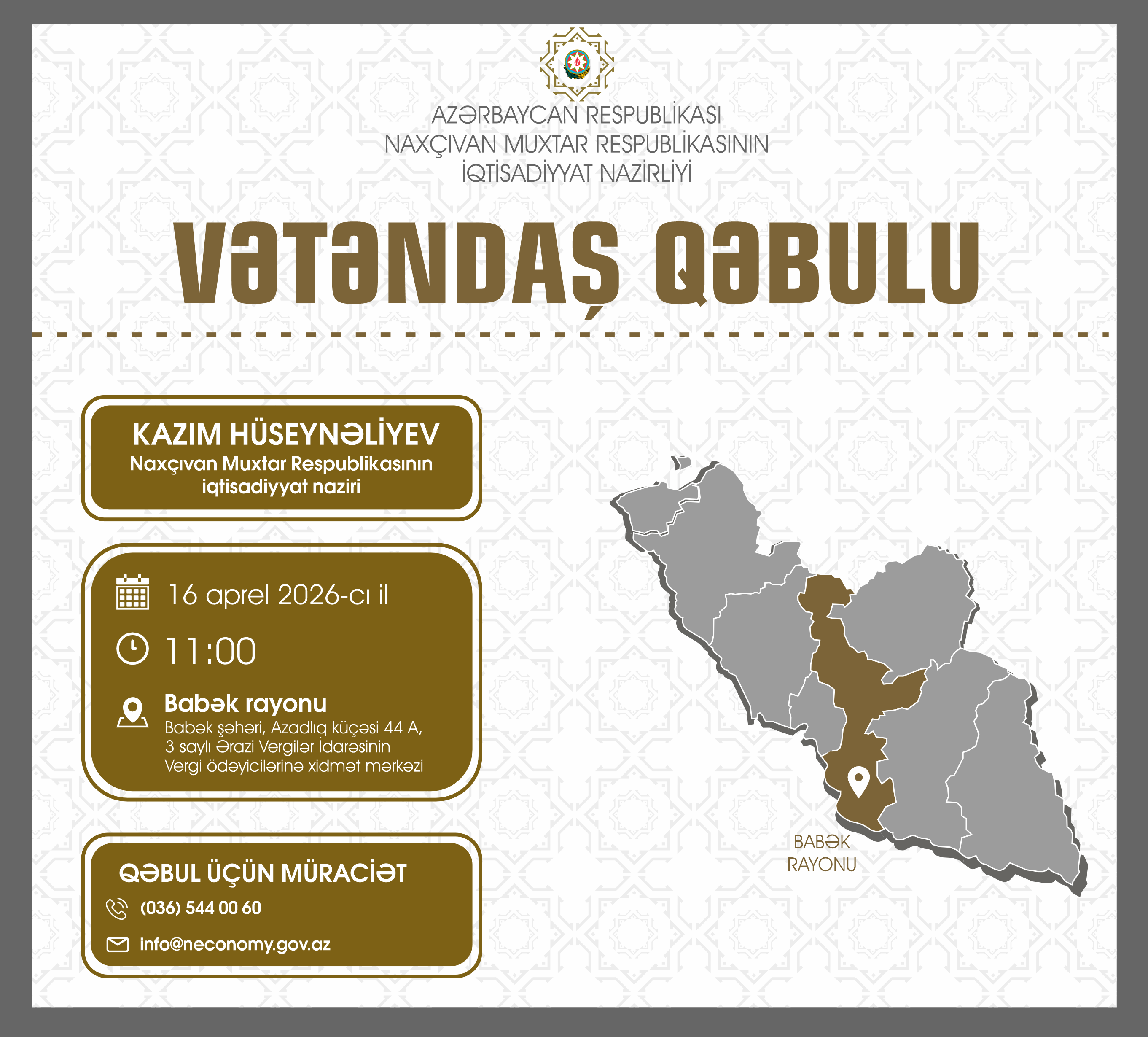 Babək rayonunda vətəndaş qəbulu keçiriləcək...