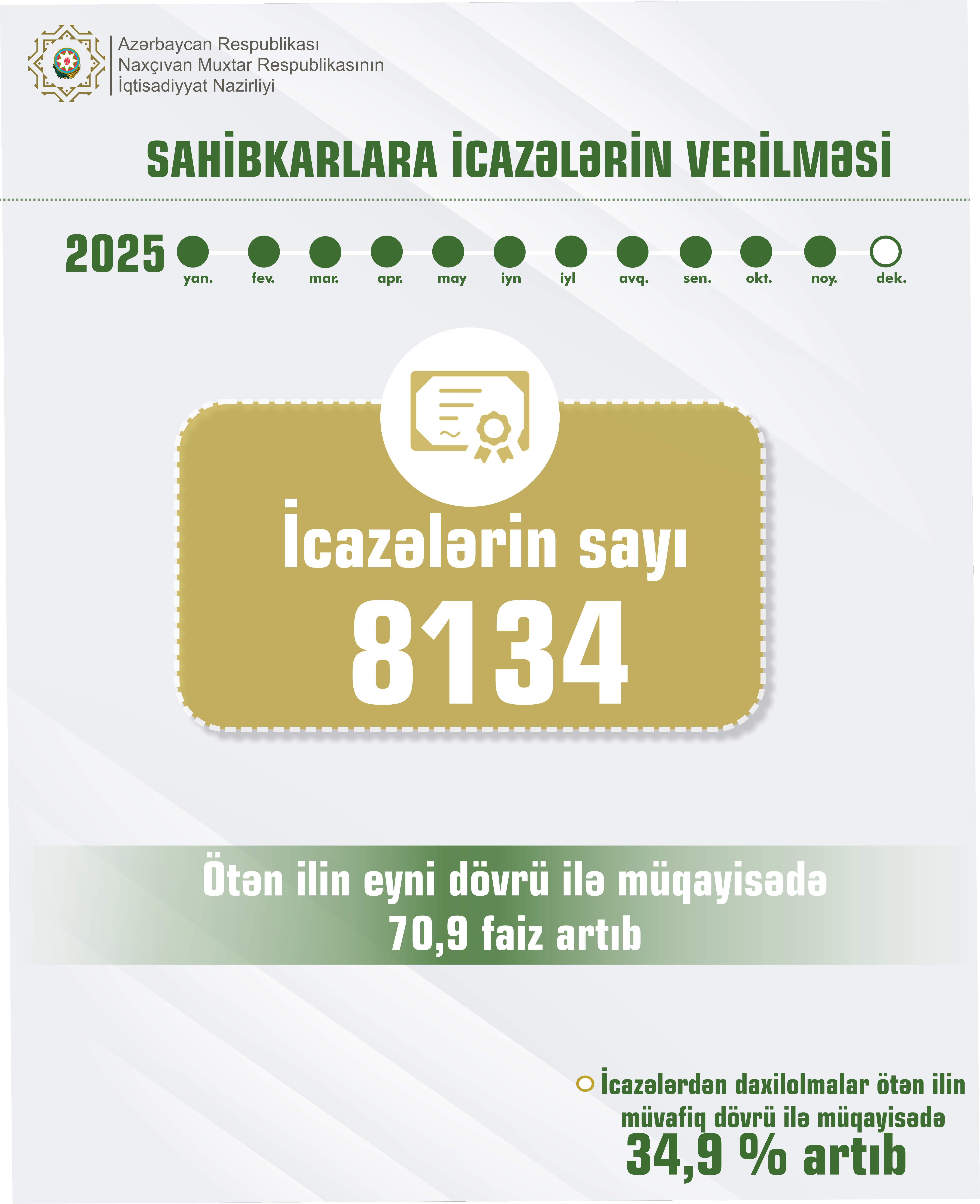 Naxçıvanda verilən icazələrin sayı 70,9 faiz artıb...